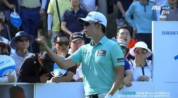 | 29일 경북 구미에서 열린 2019 DGB금융그룹 Volvik 대구경북오픈 대회에서 우승한 김비오가 경기 중 손가락 욕설로 논란이 되고 있다. /사진=KPGA제공 |