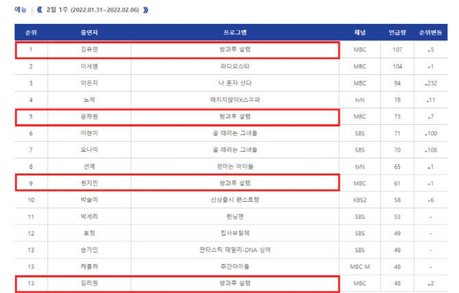 방설때 프로그램 내내 화제성 1등이었는데