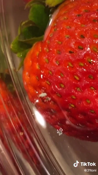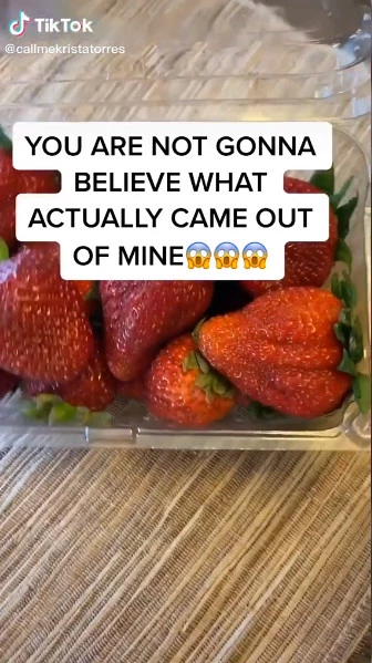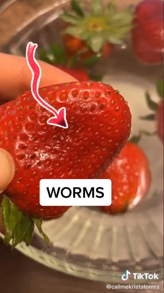 크리스타 토레스라는 틱톡 이용자가 올린 영상을 보면 슈퍼마켓에서 산 딸기를 30분 동안 소금물에 담가두자 딸기 틈새에 숨어있던 벌레가 빠져나와 모습을 드러낸다.