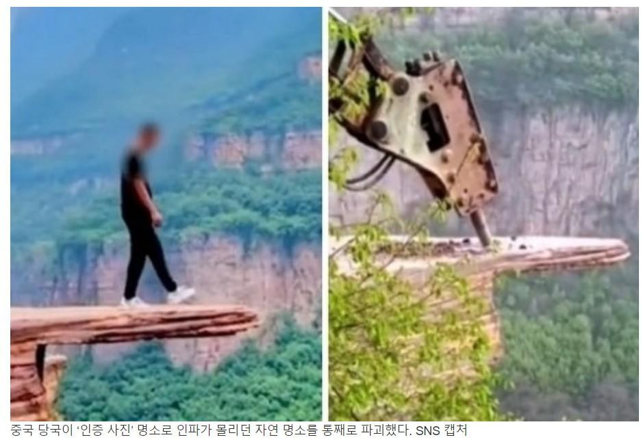 중국 당국이 ‘인증 사진’ 명소로 인파가 몰리던 자연 명소를 통째로 파괴했다.