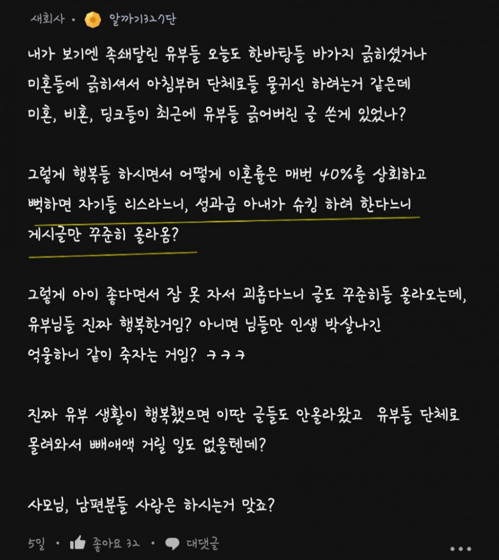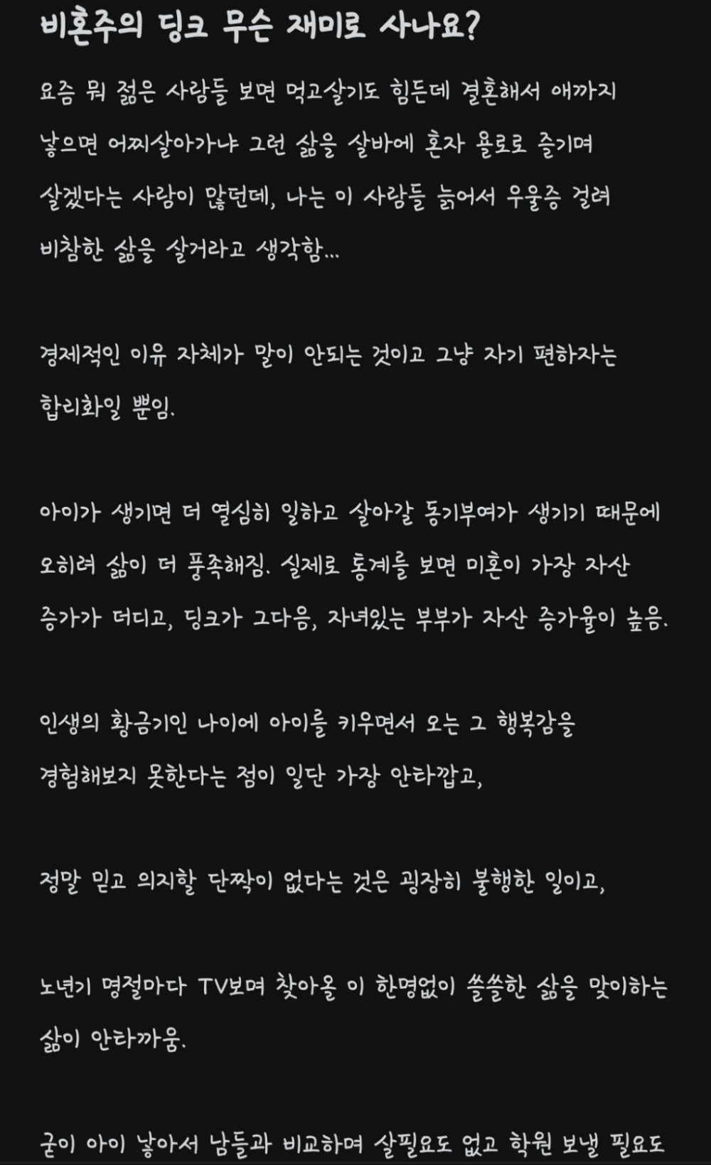 비혼주의 딩크 무슨 재미로 사나요? : 블라 여론 바뀜