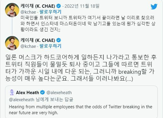 트위터가 망해가고 있다는 소식을 들은 일론 머스크