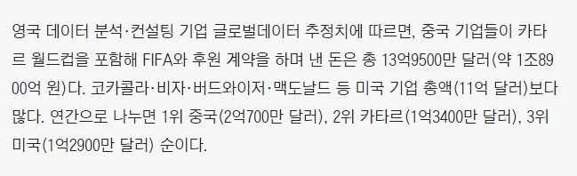 카타르 월드컵 광고비 지출 중국 혼자 씹 압도