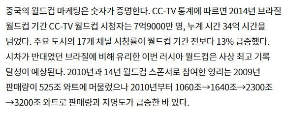 러시아 월드컵 광고비 지출 중국 혼자 씹 압도