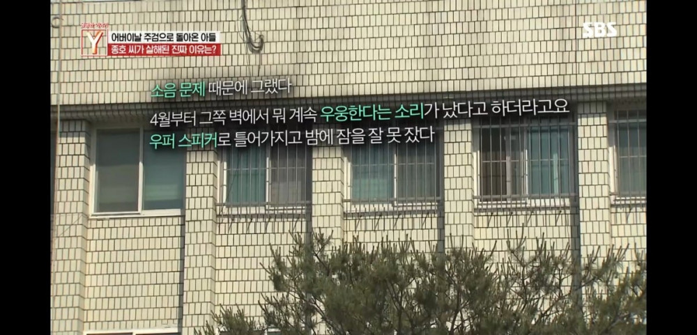 소음의 정체는 가해자 집 보일러 소리로 추정되고 그거때문에 허무하고 고통스럽게 죽었다는것