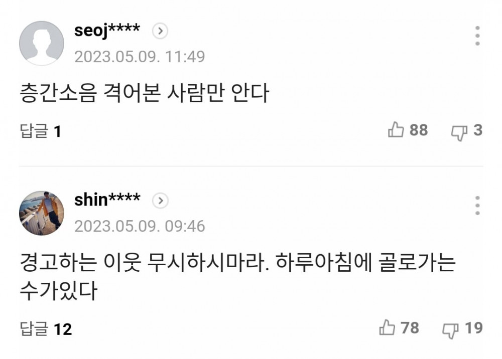 -처음에 소음 때문에 이웃간 살인사건 났다는 기사 났을때 사람들 반응.....