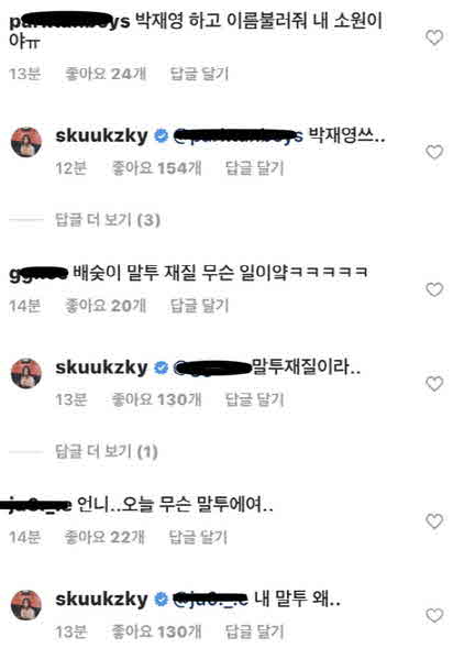 이를 본 네티즌들은 "말투 재질 귀엽다", "점 2개를 안 쓴 댓글이 없다", "너무 귀엽다", "일관성 있어서 웃기다", "귀여워 죽겠다" 등 댓글을 남겼다.