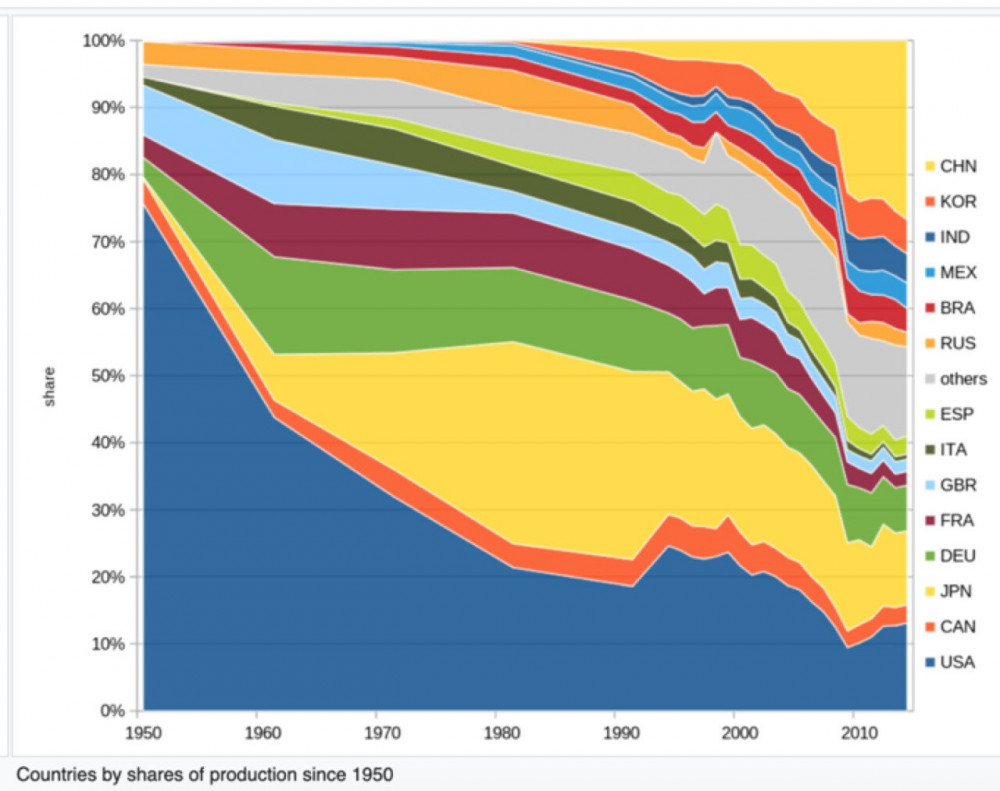 [ 1920년대 세계 94% 의 자동차를 생산하던 미국 자동차 산업은 10% 대로 감소 ]