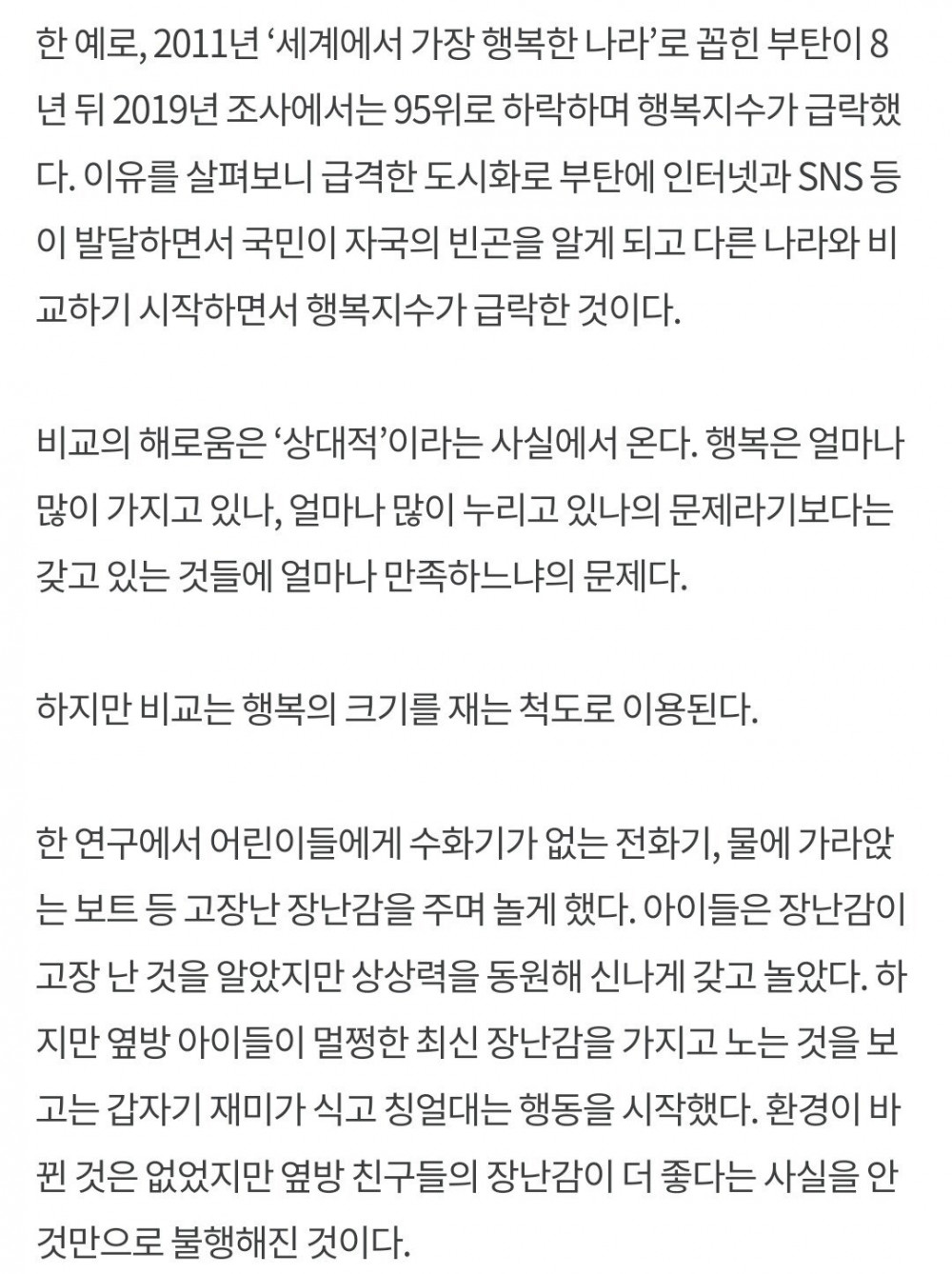 [ 스마트폰 보급후 부탄의 행복도 급락 ]
