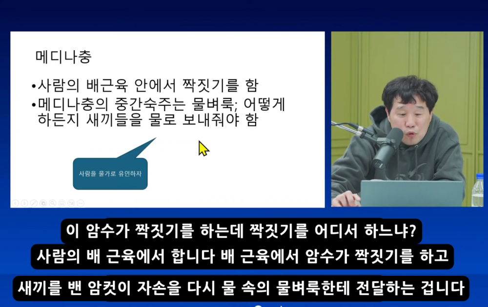 사람을 물가로 끌고 가는 엽기적인 기생충