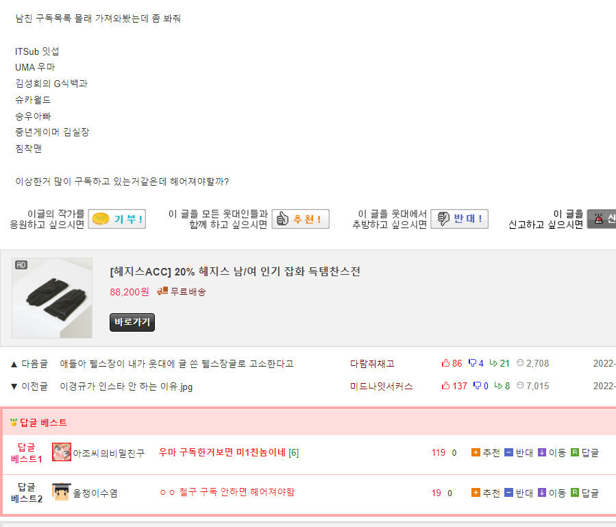 남친 유튜브 구독목록인데 헤어질지 말지 고민이야