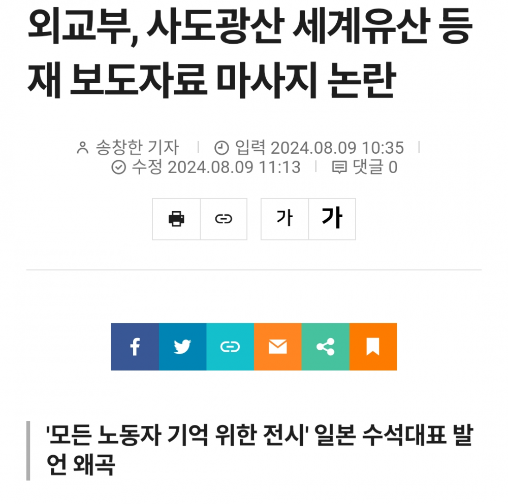 외교부, 사도광산 의도적 국내 정보 조작, 왜곡전달 적발