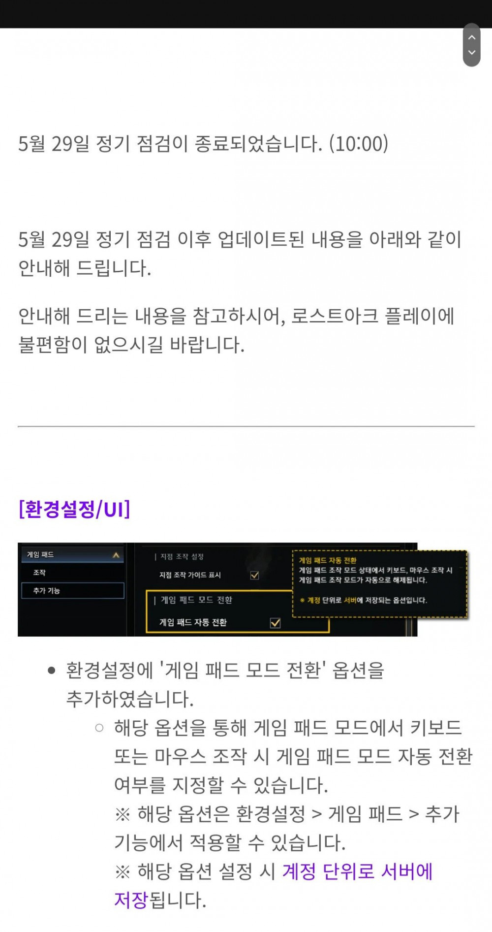 5월 22일 로스트아크가 키보드 마우스, 게임패드 동시사용을 막아버림