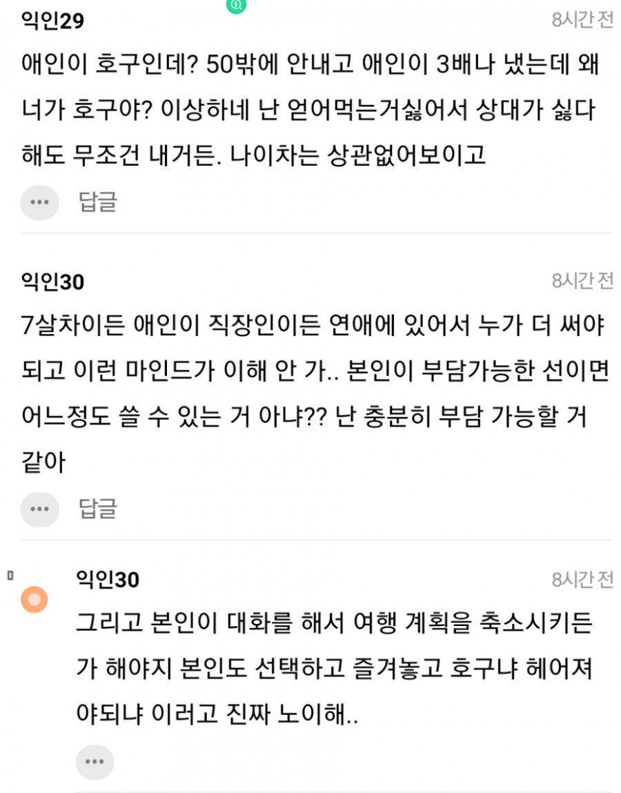 7살 차이에 억대연봉이라는 남친이 대학생 주머니 사정도 고려 안 함??? 여친이 호구ㅠㅠ헤어져!!!