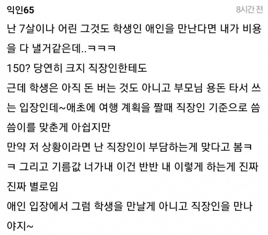 남친이 150이나?? 남친 불쌍. 남친이 호구ㅠㅠ돔황챠!!!