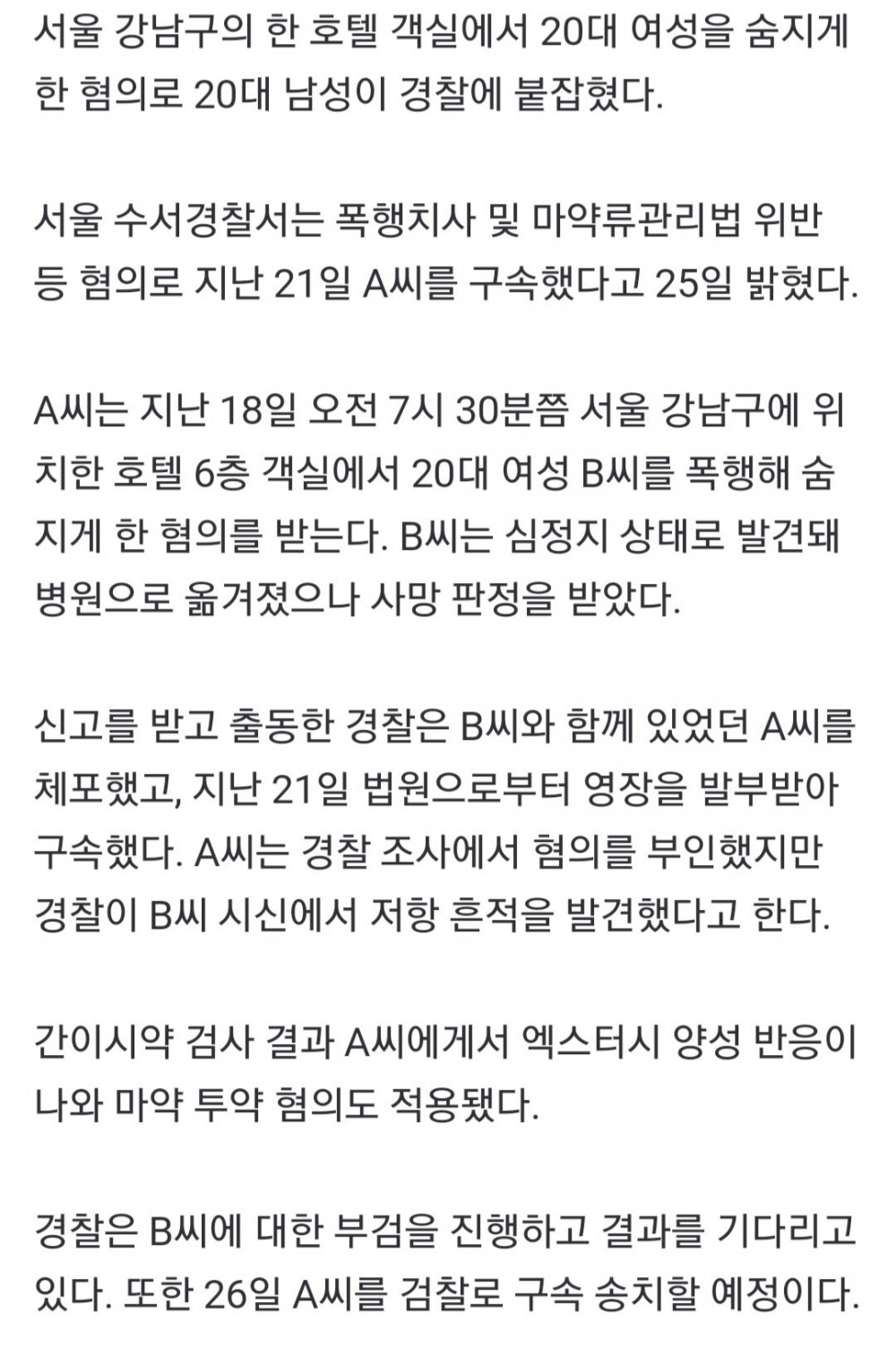 호텔서 약빨고 20대 남성이 20대 여성 때려죽임
